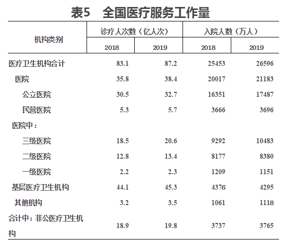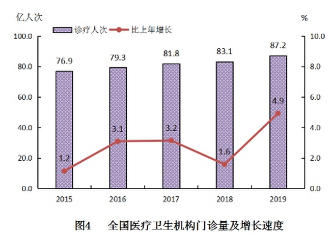 £¨Ò»£©ÃÅÕïºÍסԺÁ¿¡£2019Ä꣬ÌìÏÂÒ½ÁÆÎÀÉúÆø¹¹×ÜÕïÁÆÈ˴δï87.2ÒÚÈ˴Σ¬±ÈÉÏÄêÔöÌí4.1ÒÚÈ˴Σ¨ÔöÌí4.9%£©¡£2019ÄêסÃñµ½Ò½ÁÆÎÀÉúÆø¹¹Æ½¾ù¾ÍÕï6.2´Î¡£