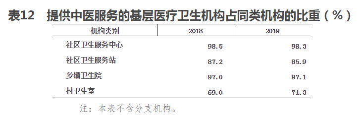 2019Äê⣬ÌṩÖÐҽЧÀ͵ÄÉçÇøÎÀÉúЧÀÍÖÐÐÄռͬÀà»ú¹¹µÄ98.3%£¬ÉçÇøÎÀÉúЧÀÍÕ¾Õ¼85.9%£¬ÖÝÀïÎÀÉúÔºÕ¼97.1%£¬´åÎÀÉúÊÒÕ¼71.3%£¨¼û±í12£©¡£