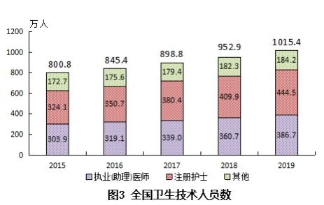 2019ÄêβÎÀÉúÖ°Ô±×ÜÊýÖУ¬ÎÀÍâÐÐÒÕÖ°Ô±1015.4ÍòÈË£¬ÐæÂäÒ½ÉúºÍÎÀÉúÔ±84.2ÍòÈË£¬ÆäËûÊÖÒÕÖ°Ô±50.4ÍòÈË£¬ÖÎÀíÖ°Ô±54.4ÍòÈË£¬¹¤ÇÚÊÖÒÕÖ°Ô±88.4ÍòÈË¡£ÎÀÍâÐÐÒÕÖ°Ô±ÖУ¬Ö´Òµ£¨ÖúÀí£©Ò½Ê¦386.7ÍòÈË£¬×¢²á»¤Ê¿444.5ÍòÈË¡£ÓëÉÏÄê½ÏÁ¿£¬ÎÀÍâÐÐÒÕÖ°Ô±ÔöÌí62.5ÍòÈË£¨ÔöÌí6.6%£©£¨¼û±í2£©¡£