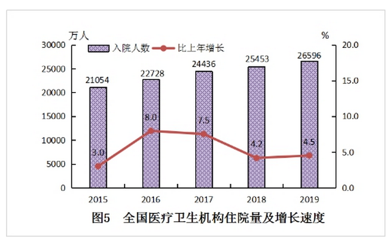 2019Ä꣬ÌìÏÂÒ½ÁÆÎÀÉúÆø¹¹ÈëÔºÈËÊý26596ÍòÈË£¬±ÈÉÏÄêÔöÌí1143ÍòÈË£¨ÔöÌí4.5%£©£¬ÄêסԺÂÊΪ19.0%¡£