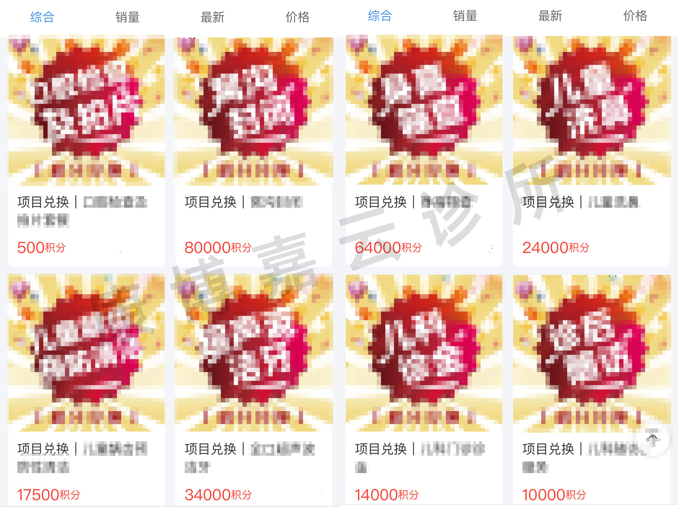 诊所可以将一些需要到店体验、价值相对更高的项目设置为较高的积分兑换。