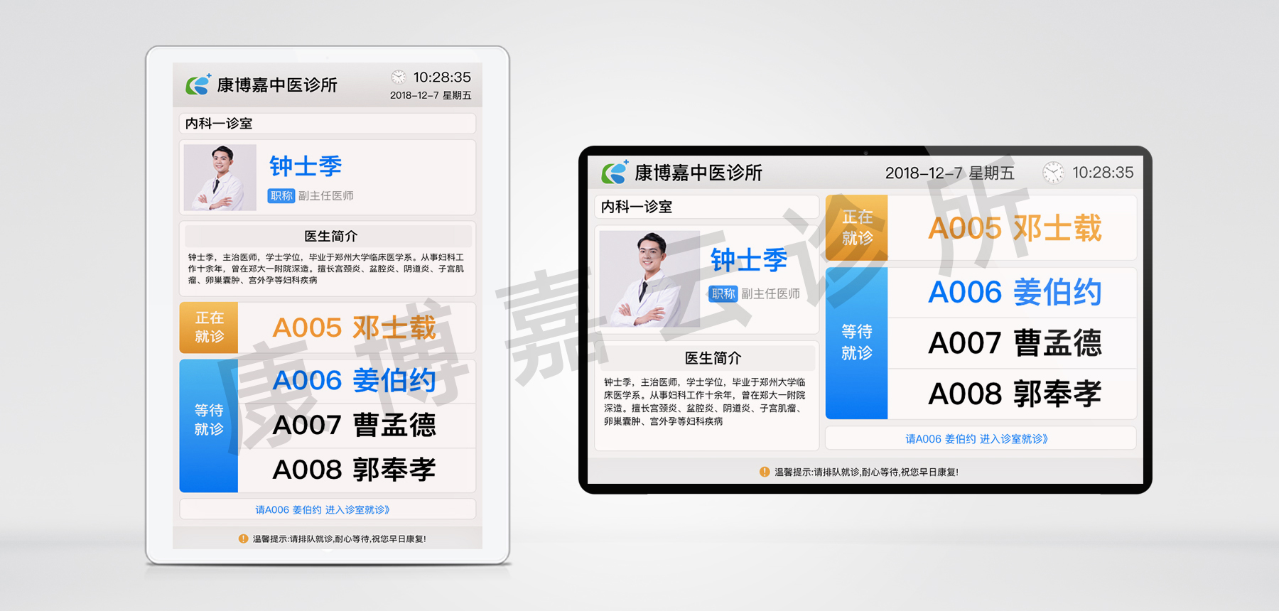 (横版&竖版小屏叫号示意图)