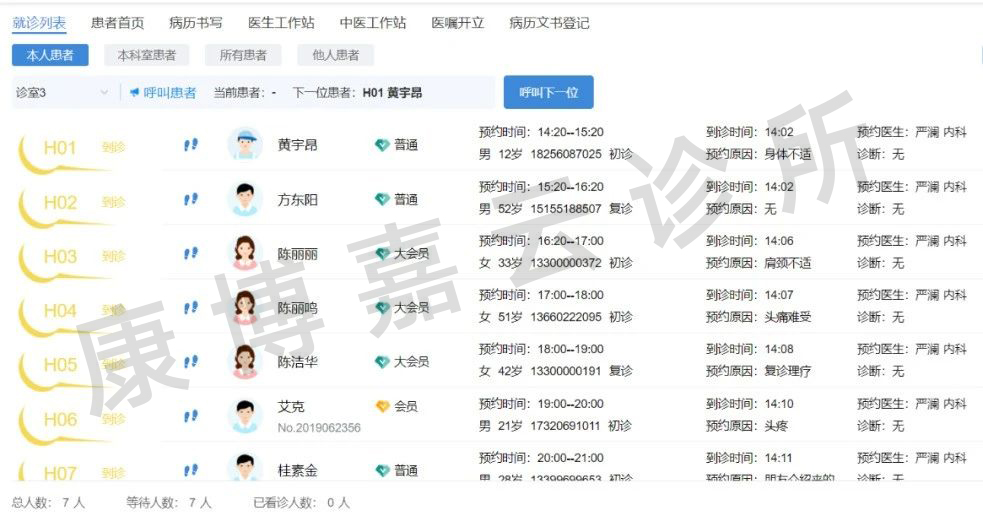 除了大屏叫号功效,UG环球云诊所治理系统还为患者提供了手机端的叫号盘问功效,利便患者从手机端知道自己的排队历程。患者不需要守在大屏前期待,而是可以买杯咖啡、玩会手机或者出门散散步,自行把候诊的间隙安排稳当。在上线叫号效劳后,患者们纷纷感伤,门诊部清静、温馨、排队井然有序,与医院的嘈杂拥挤形成了强烈的比照,在这里看诊太舒心了。