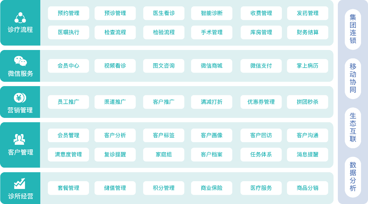 UG»·ÇòÔÆÕïËùÖÎÀíϵͳÖ÷ÒªÓµÓÐÒÔϹ¦Ð§Ä£¿é£¬°üÀ¨Ô¤Ô¼¹ÒºÅ¡¢¿´ÕïÖÎÀí¡¢Ö»ÄÜÕï¶Ï¡¢ÊÕ·Ñ·¢Ò©¡¢Ò½ÖöÖ´ÐС¢Ä¥Á·¼ì²é¡¢²ÆÎñ¿â·¿µÈ»ù±¾¹¦Ð§£¬Ò²º¸Ç΢ÐÅЧÀͽ¨Éè¡¢ÓªÏú¹¤¾ßÖ§³Ö¡¢¿Í»§ÏµÍ³´î½¨ºÍÕïËùı»®ÆÊÎöµÈ½ø½×¹¦Ð§£¬¼ÈÄܹ»Öª×ãÕïËùµÄÒ»Ñùƽ³£ÔËÓª£¬Ò²Äܹ»×ÊÖúÕïËùÌáÉý¿ÍÁ÷Á¿£¬ÖÎÀíÐÂÀϿͻ§ÎªÆäÌṩ²î±ð»¯Ð§ÀÍ£¬ÒÔ¼°¾ÙÐиü¶àµÄÖªÐÄÕÛÎñ¡£